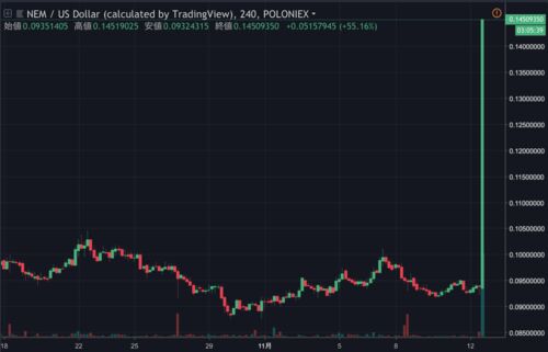 仮想通貨NEM (XEM) が先ほどから急騰しています。 XEM (4時間足)