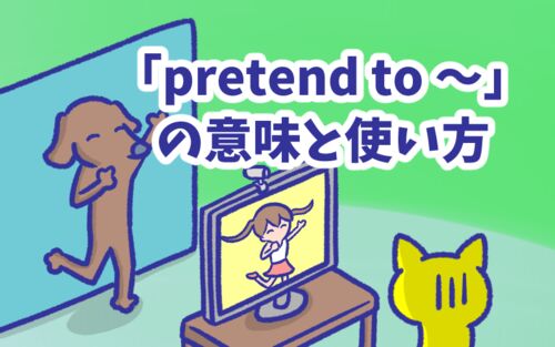 今回は英語フレーズ「pretend to 〜」の意味と使い方を勉強しよう。 to の後には動詞の原形を置いて使うフレーズだよ。 「pretend to + [動詞の原形]」の形ですね。