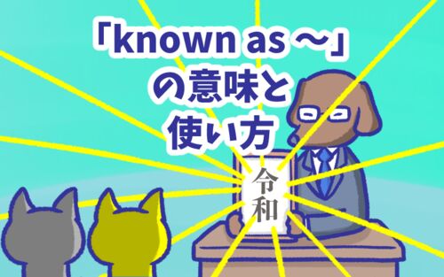 今回は英語フレーズ「known as 〜」の意味と使い方を勉強しよう。 know は動詞の「知っている」で、known は過去分詞形だから「知られている」ですか。 そう、そして as は「〜として」という意味で使われているよ。